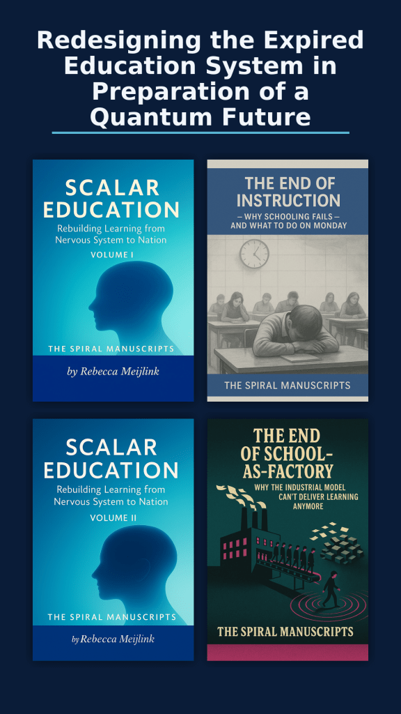 Scalar Education: Volume I is a full blueprint—end-to-end architecture from classroom state to national verification, with annexed templates and implementation details. Built for educators, reformers, and future architects of learning, this is not theory. It’s a manual for the quantum-literate age ahead.