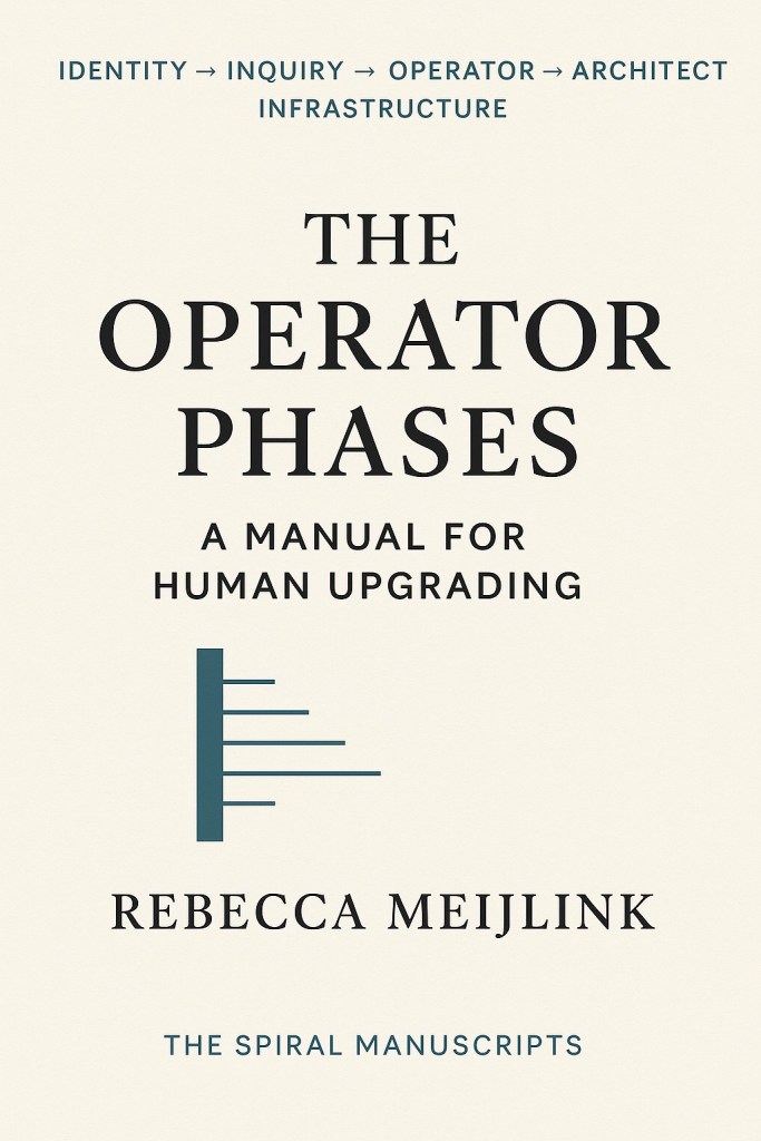 The Operator Phases is a map of how a human actually moves from survival-by-story to coherent operation, and what has to change in your nervous system, your environment, and your life architecture for that shift to be real. It names five phases you already recognise but have never had clean language for, and shows why insight and willpower are not enough, why “self-work” becomes a trap, and why intelligent people keep collapsing in the same places under load.