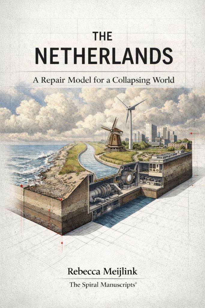 In this reading, the Netherlands is not simply a geographic territory—it is a structural exemplar. It demonstrates how repair becomes a system of operation under sustained constraint. The structural findings from this analysis inform not only this book, but also the broader architecture of The Spiral Manuscripts®, which codifies repair protocols across sectors, scales, and collapsing civilisations.